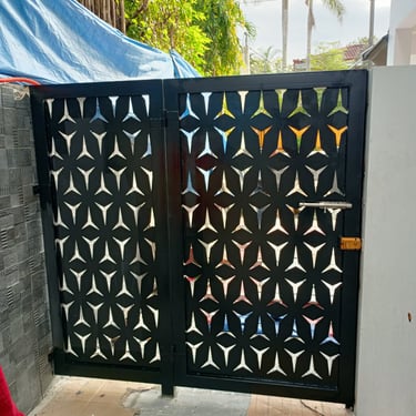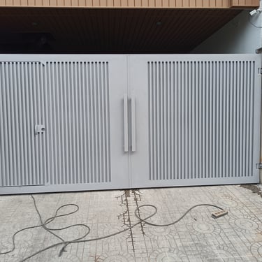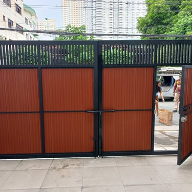 This gate is installed in Makati, A combination of louver and grills ( made of steel tubular), coated with epoxy primer and mat black paint.