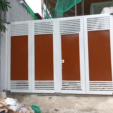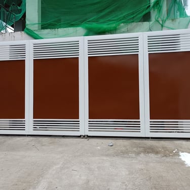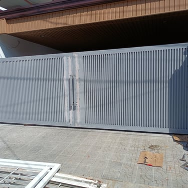 A bi-fold steel gate was installed in a village within Commonwealth. This gate showcases a fully louvered design, made from 1.3mm thick galvanized sheets as per the owner’s specifications. It is treated with a robust epoxy primer coating for enhanced protection and longevity. Sliding Gate: A louver-type steel sliding gate has been constructed with a galvanized tubular frame, complete with heavy-duty rails and rollers. The louvers are made from 16-gauge galvanized sheet metal. Installation Location: Manila.