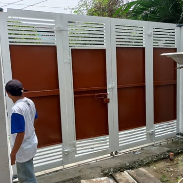 Supply and installation of steel gate (louver top, louver bottom, and panel at the middle). Gate installed at Mayor J. Posadas Ave., Dona Rosario Heights Subdivision, Sucat, Muntinlupa City.