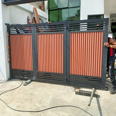 The project involved the supply and installation of a steel gate with panels made of WPC (wood plastic composite). I recommend using light materials for a bi-fold gate, especially for larger gates spanning six (6) meters and above. The top portion of the gate is filled with "WALL SPIKE" to prevent burglars from climbing over. The project was completed on February 27, 2021, at the Dona Juana subdivision in Pasig.
