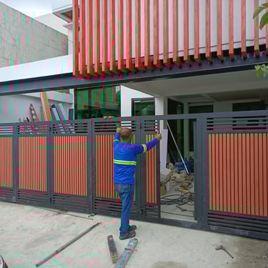 A custom steel gate was recently installed inside the exclusive McKinley Hills Village. The gate frame is constructed with 2 mm-thick galvanized steel tubular, ensuring durability and long-term corrosion resistance. For the panel, the homeowner selected Wood Plastic Composite (WPC) — chosen not only for its sleek and modern aesthetic but also for its color that perfectly complements the home’s exterior design.