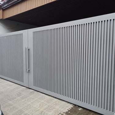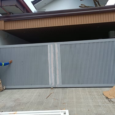 Steel gate Supply and installation: The gate features a louver-type design, constructed entirely from high-quality stainless steel, in line with the owner's preference for durable materials. Stainless steel, renowned for its longevity and resistance to corrosion, eliminates the need for frequent maintenance such as repainting and prevents rusting, ensuring prolonged durability. Notably, the gate is equipped with heavy-duty pillow block bearings, serving as robust hinges, enhancing its overall sturdiness and functionality.Installed Cainta.
